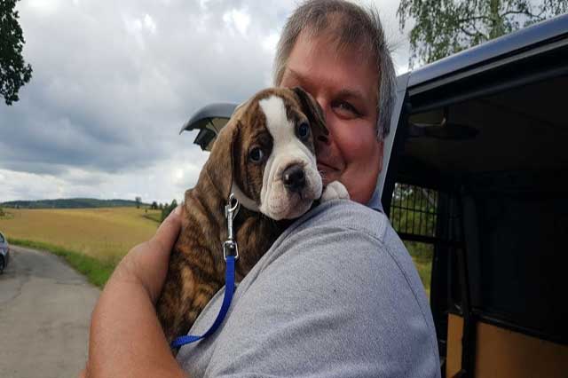 Am 03.07.2020 ist klein Barney bei uns eingezogen. Nachdem wir unsere Pebbels im Januar gehen lassen mussten waren wir gar nicht auf der Suche nach einem Hund, außerdem war klar wenn zieht wieder eine Dogge ein. Aber erstens kommt es anders und zweitens anders als man Denkt! Mit einem Bild im Status einer Freundin fing alles an, diesmal hatte ich mich sofort verliebt. Nach langen hin u. her ob der kleine Mann denn in unser Rudel passt, ist die Entscheidung gefallen der Wirbelwind zieht bei uns ein. Wir haben es auch nicht bereut der kleine Clown hat eine ganz besondere Art sich in die Herzen zu schleichen.